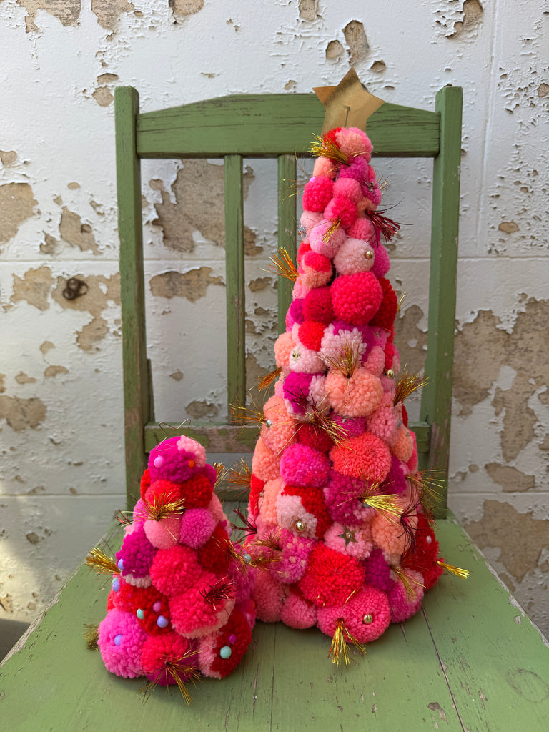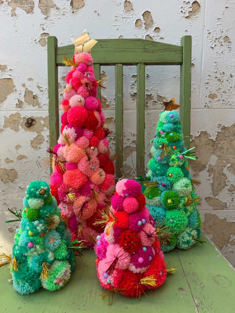 Transform your holiday décor with these charmingly bold pom pom Christmas trees! Packed with personality, these festive beauties showcase fluffy cotton pom poms in vibrant pink or lush green, each crowned with a golden star. Available in three cheerful sizes—S (18x11cm), M (28x12cm), or L (41x16cm)—there's a perfect match for every nook. Ideal for spreading Christmas joy with a playful, modern twist that'll have everyone talking!