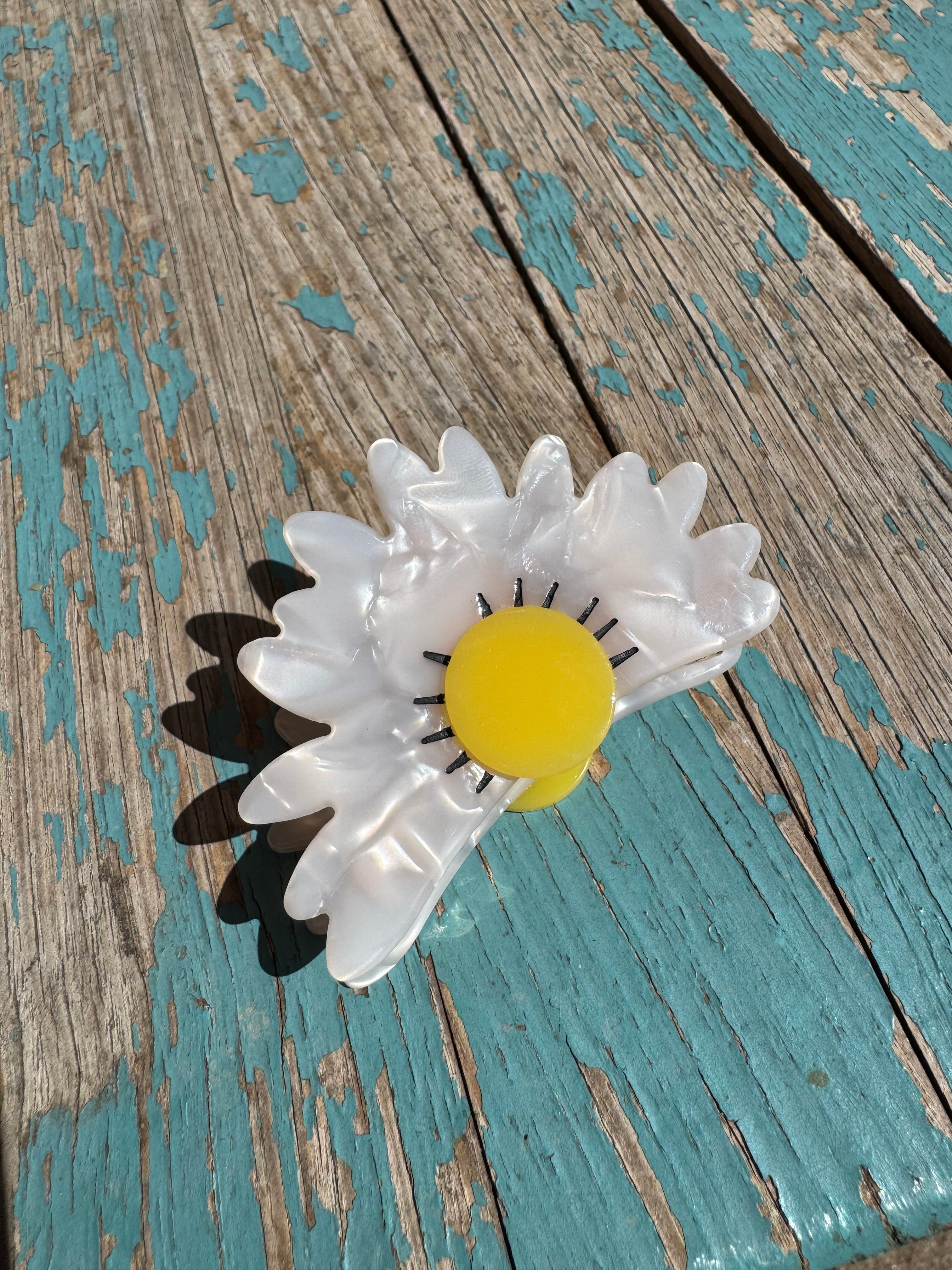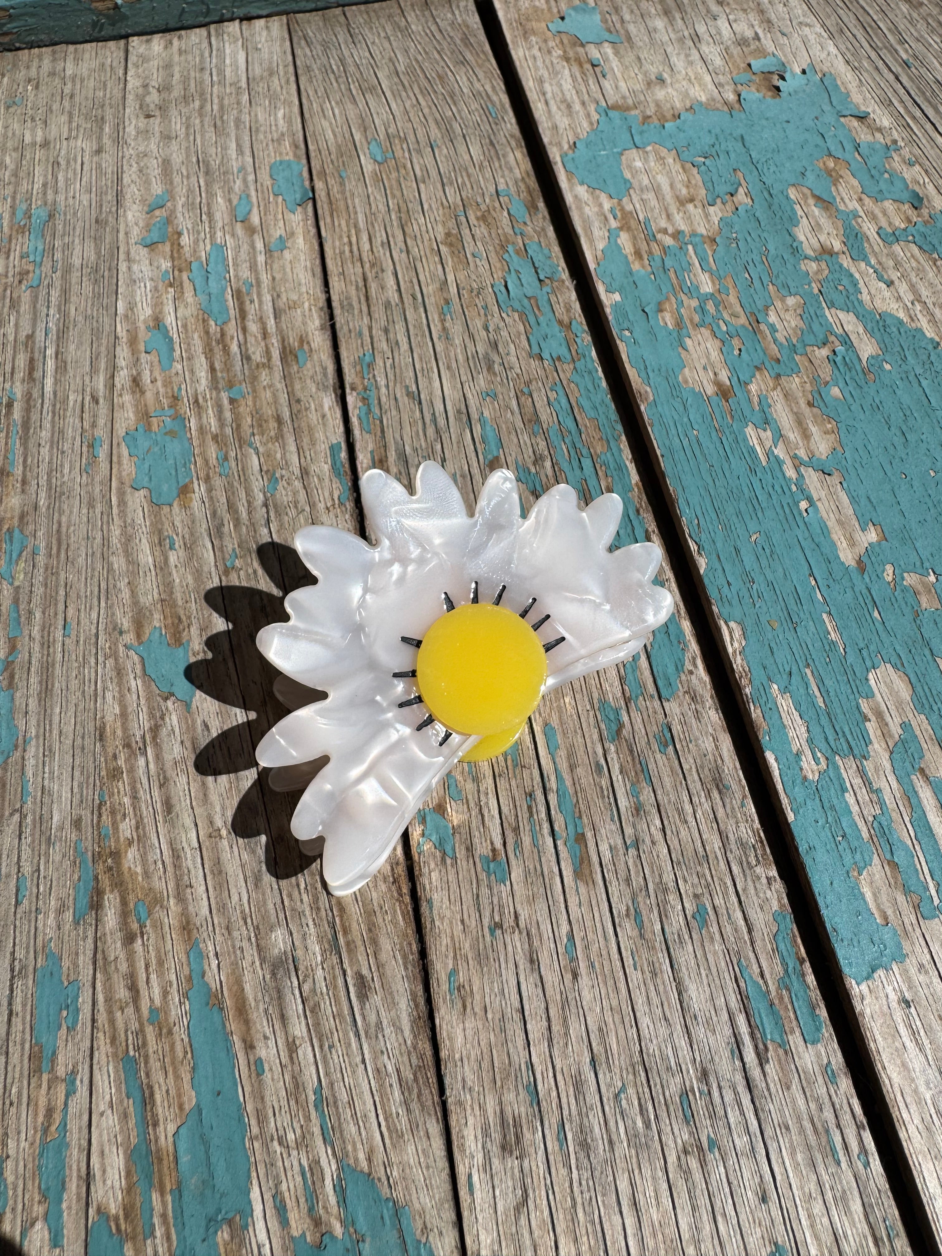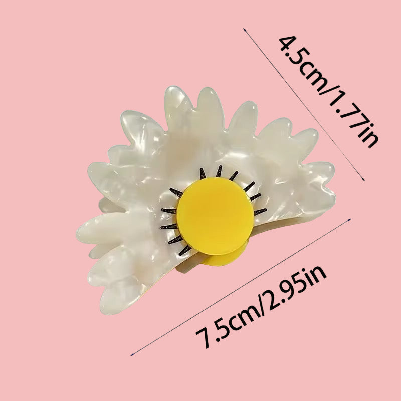 Brighten your look with this playful Daisy Hair Clip, featuring a crisp white flower with a cheerful yellow center. Measuring 7.5cm by 4.5cm, it’s the perfect size to add a fresh, floral touch to any hairstyle while keeping your hair securely in place.