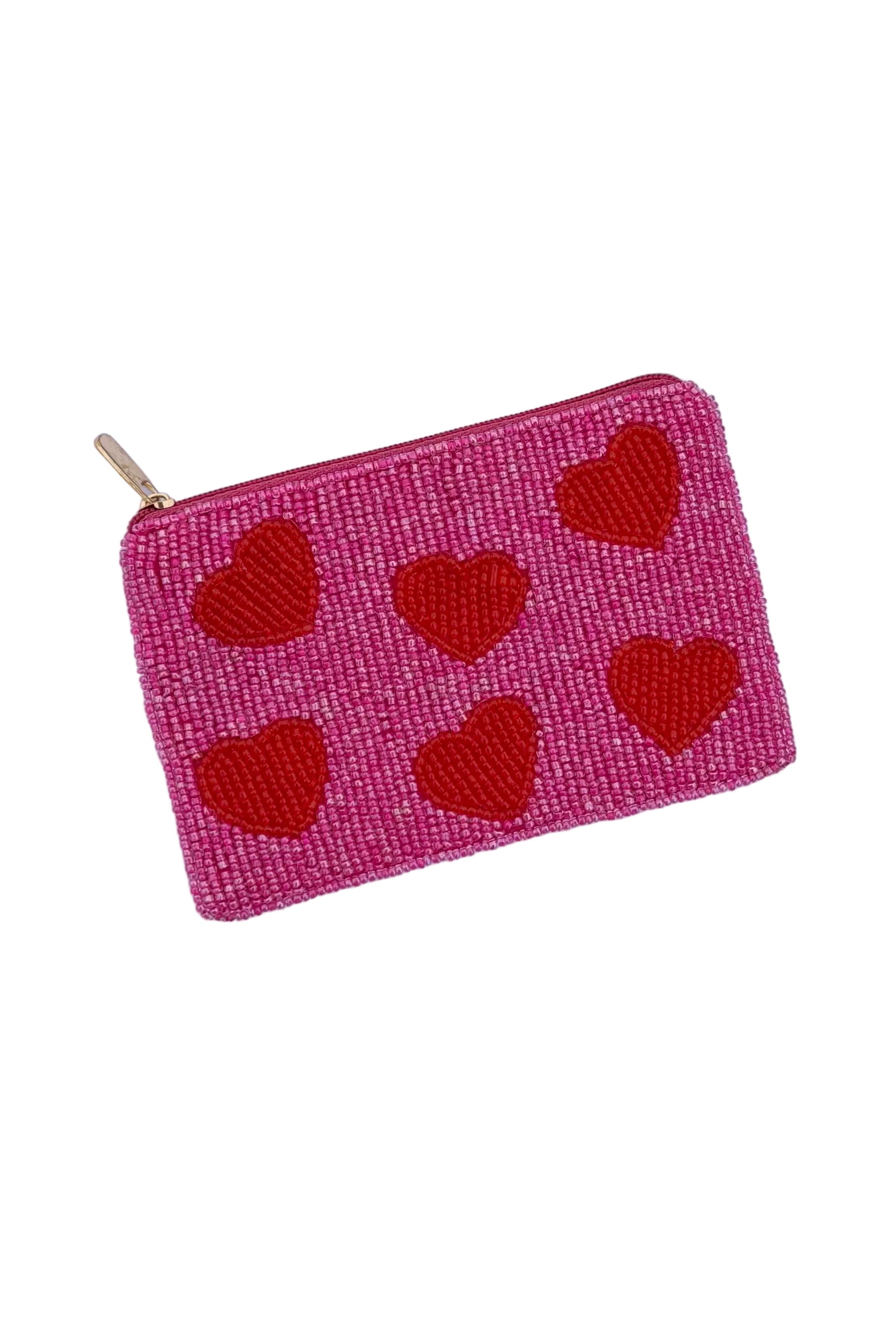 Spread the love with this adorable beaded coin purse! Measuring 14x10cm, it features charming red beaded hearts dancing across a vibrant hot pink back—the perfect pocket-sized companion for keeping your coins and small treasures organised in style. Each bead is carefully placed to create a playful, eye-catching design that's sure to brighten your day. Preorder now for February delivery and get ready to carry a little extra love wherever you go!