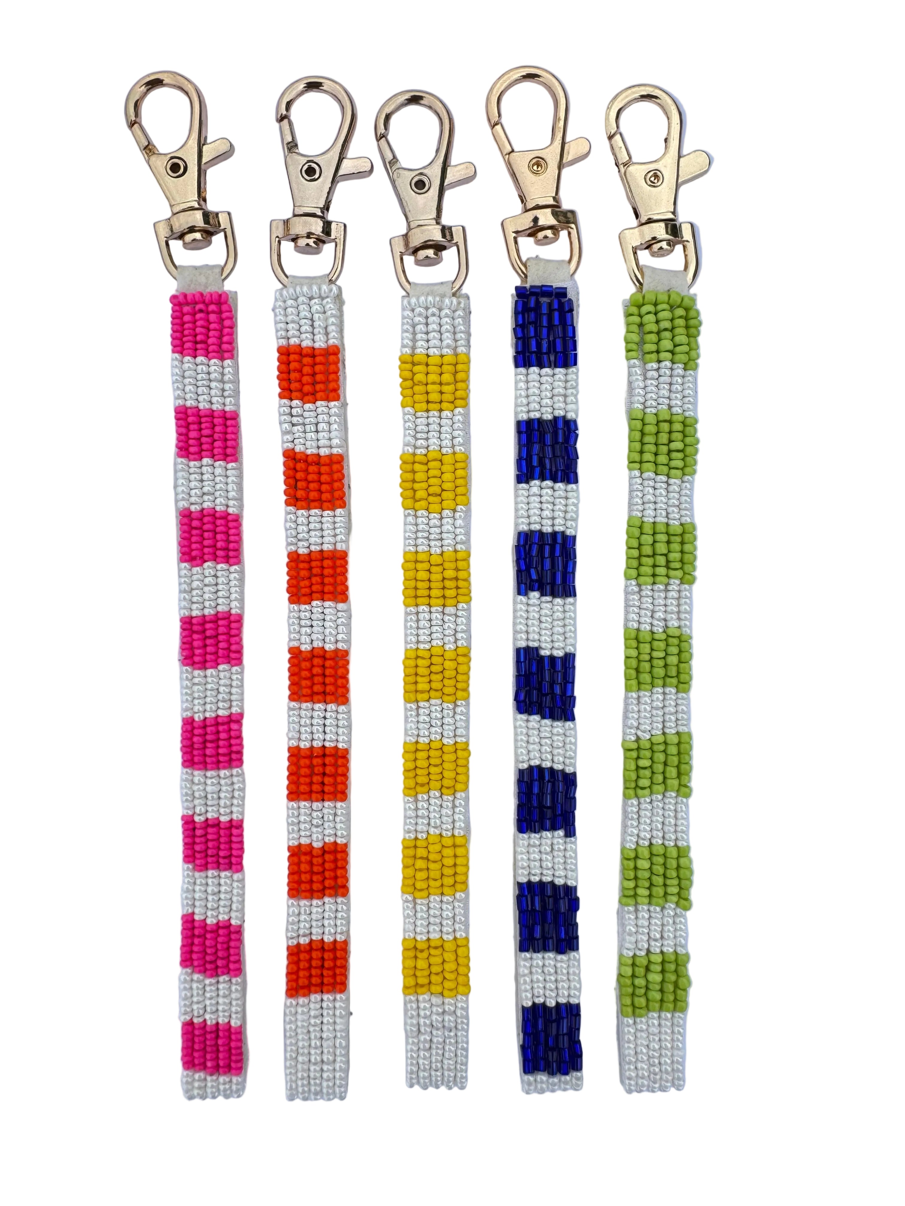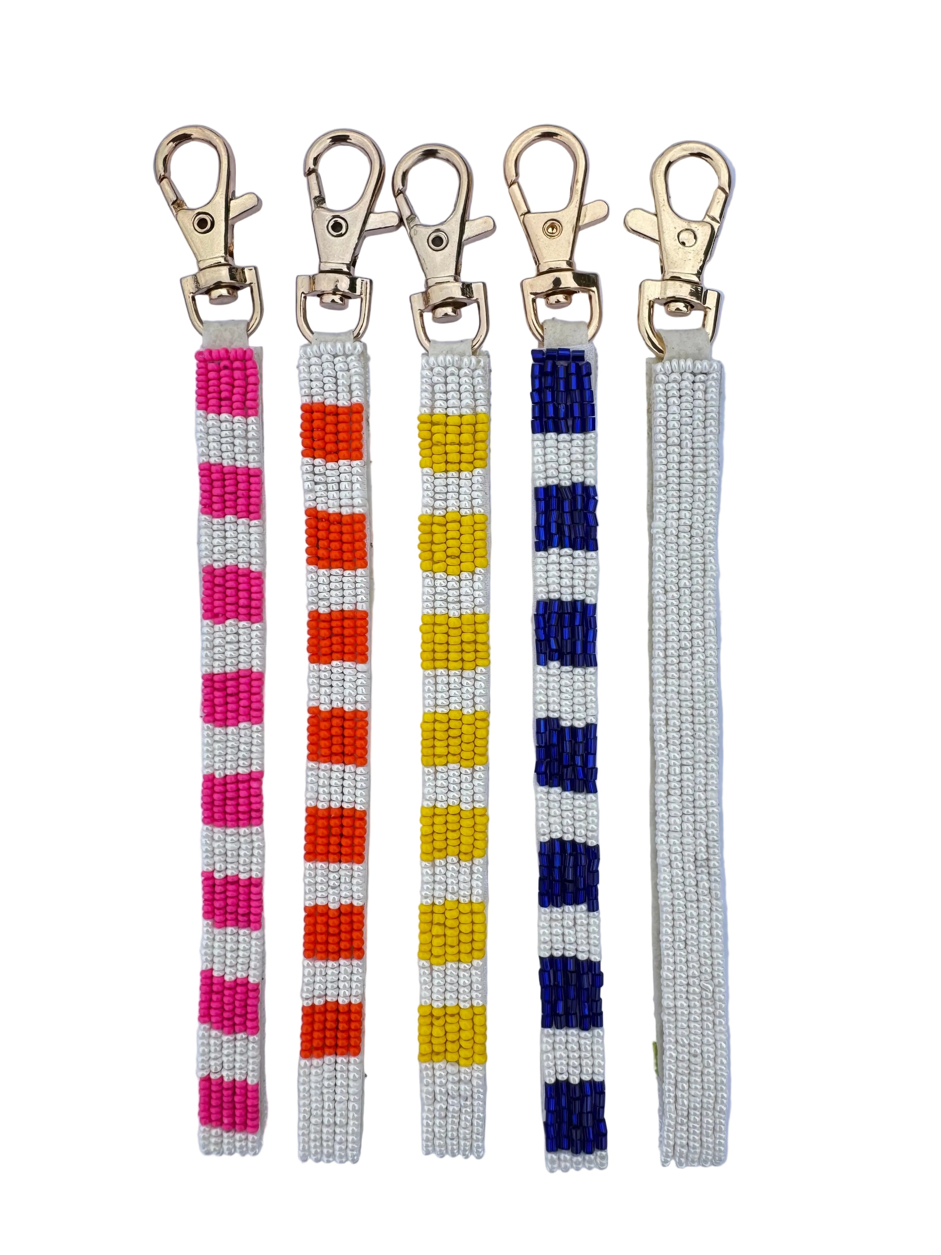 Transform your everyday carry with this fun striped beaded keychain and bag charm! Sized at 18cm including the clasp, it clips perfectly onto keys or dangles from your favourite bag. Plain white beaded back. Five vibrant colour variations mean you can switch up your vibe whenever the mood strikes. Lock in your preorder now and get yours delivered in February/March