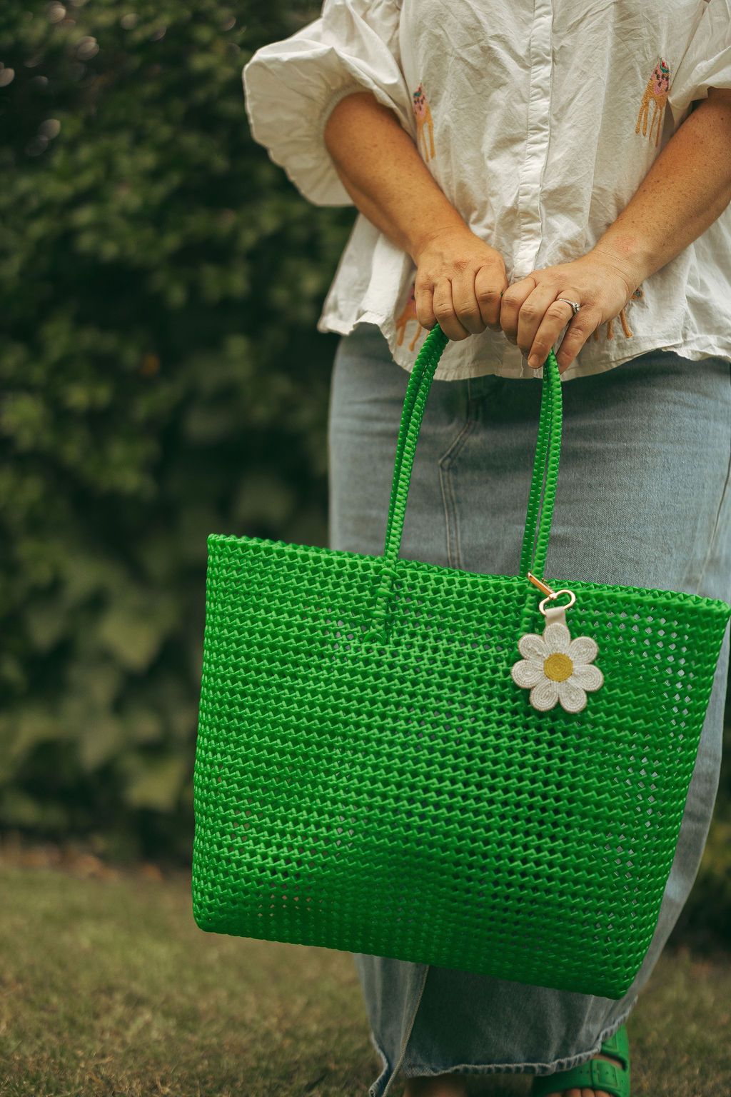 Your new favourite tote does it all—beach days, market trips, daily carry, you name it. This handmade woven plastic bag is spacious and sturdy, with long handles that make toting a breeze. The durable design shrugs off whatever you throw at it. Want to jazz it up? Add your own keyring and make it totally you. Four fabulous colours to choose from.
