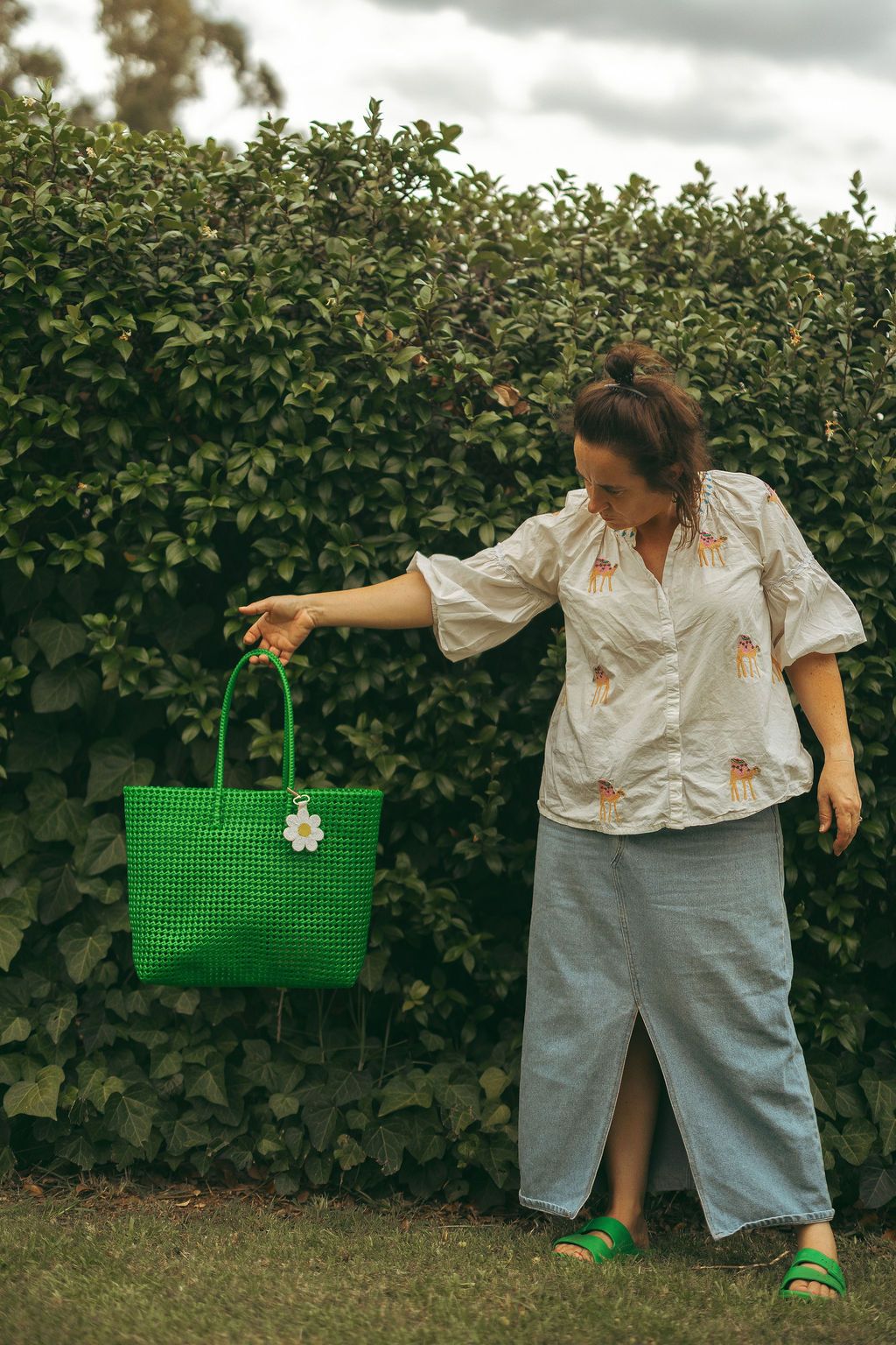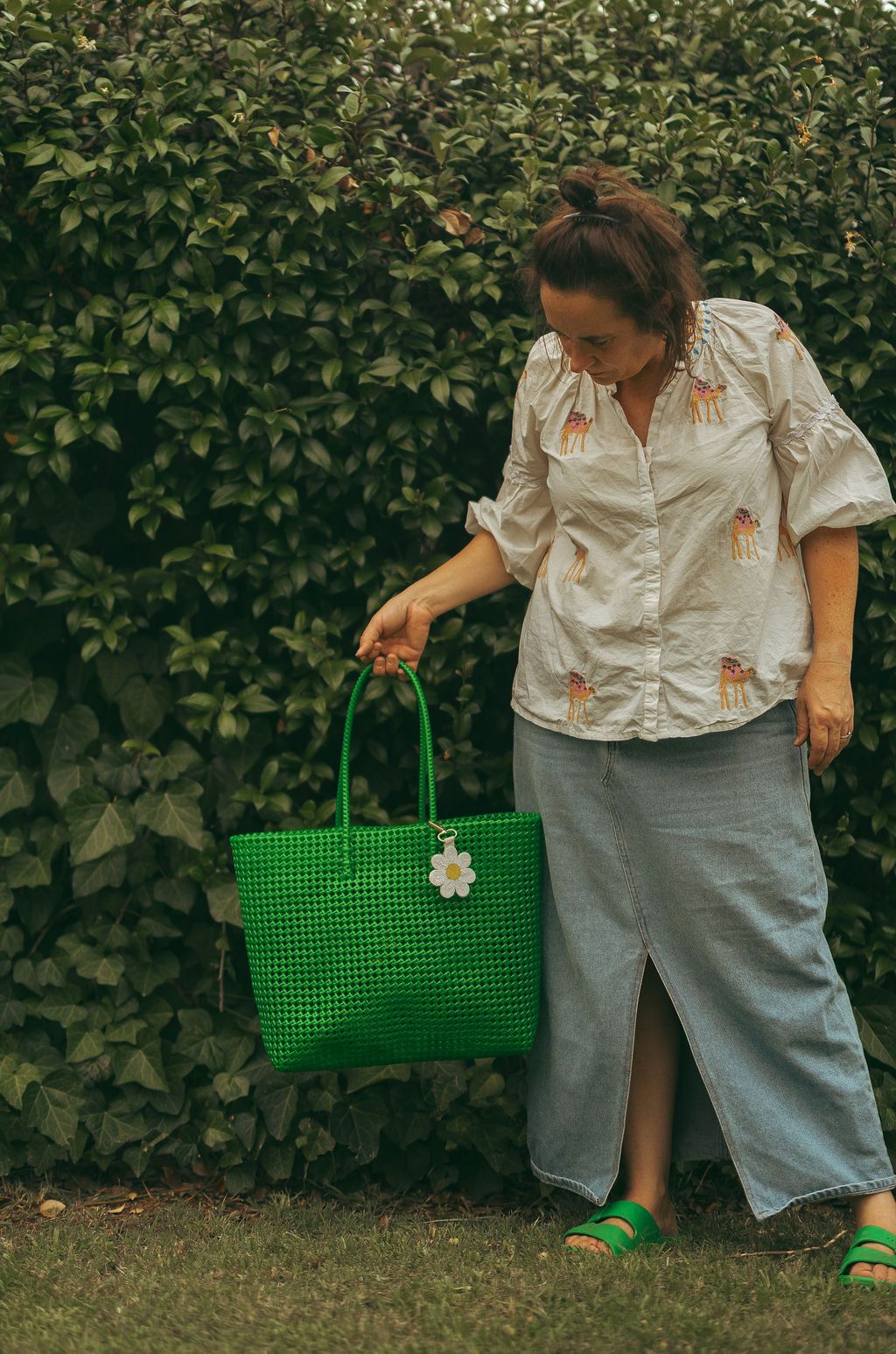 Sorbet Woven Plastic Tote Bag - Palm Green - PREORDER
