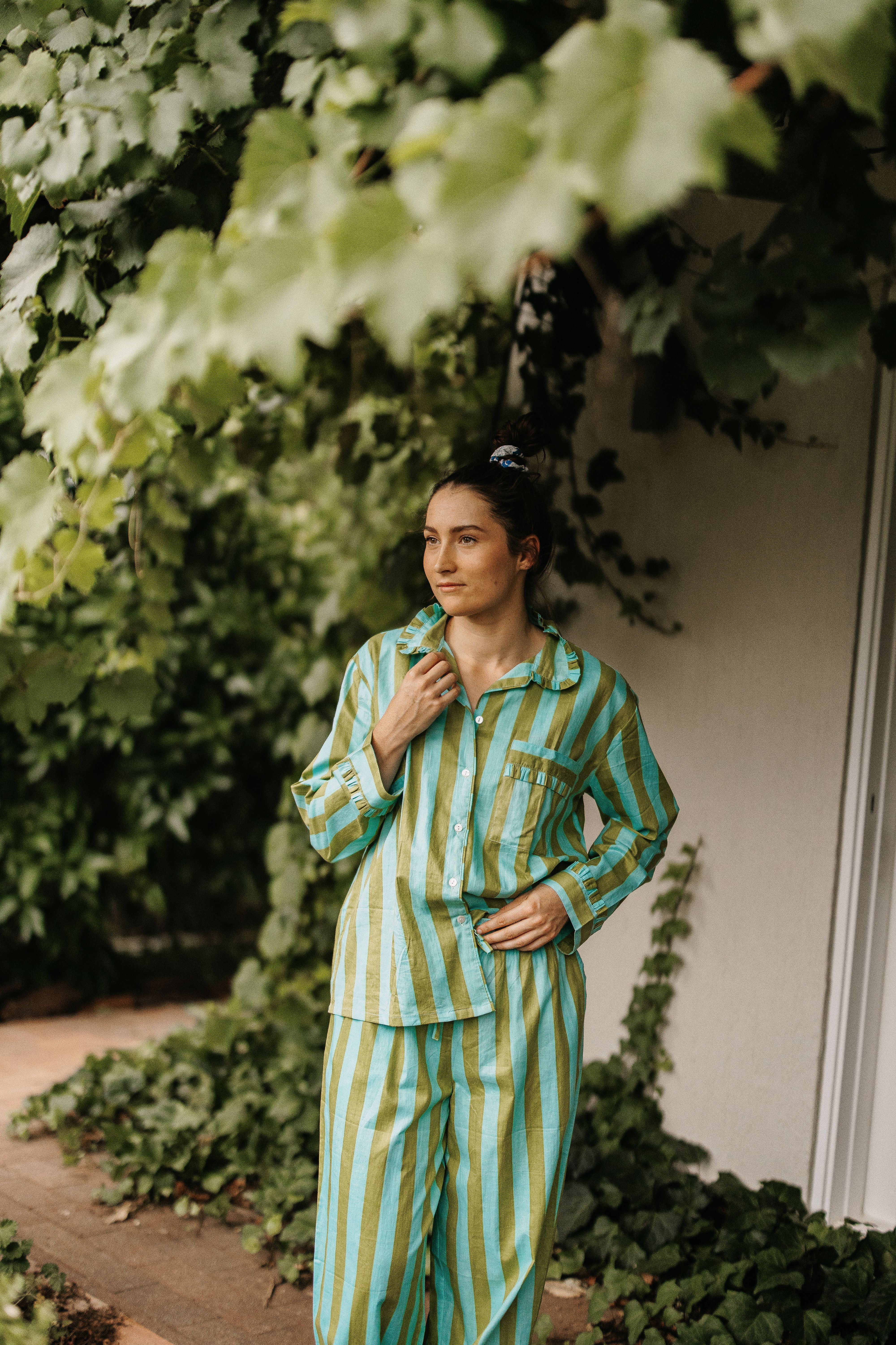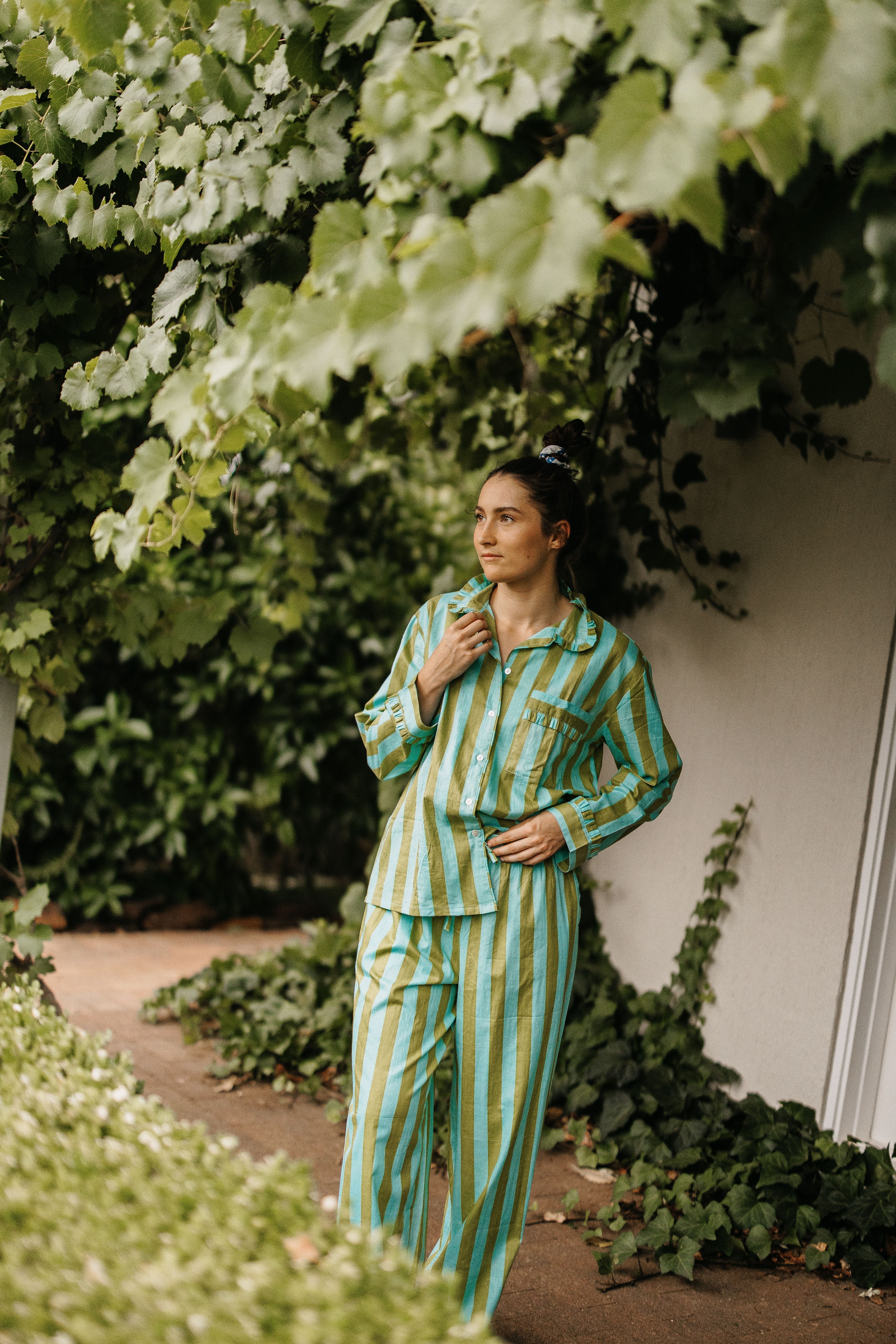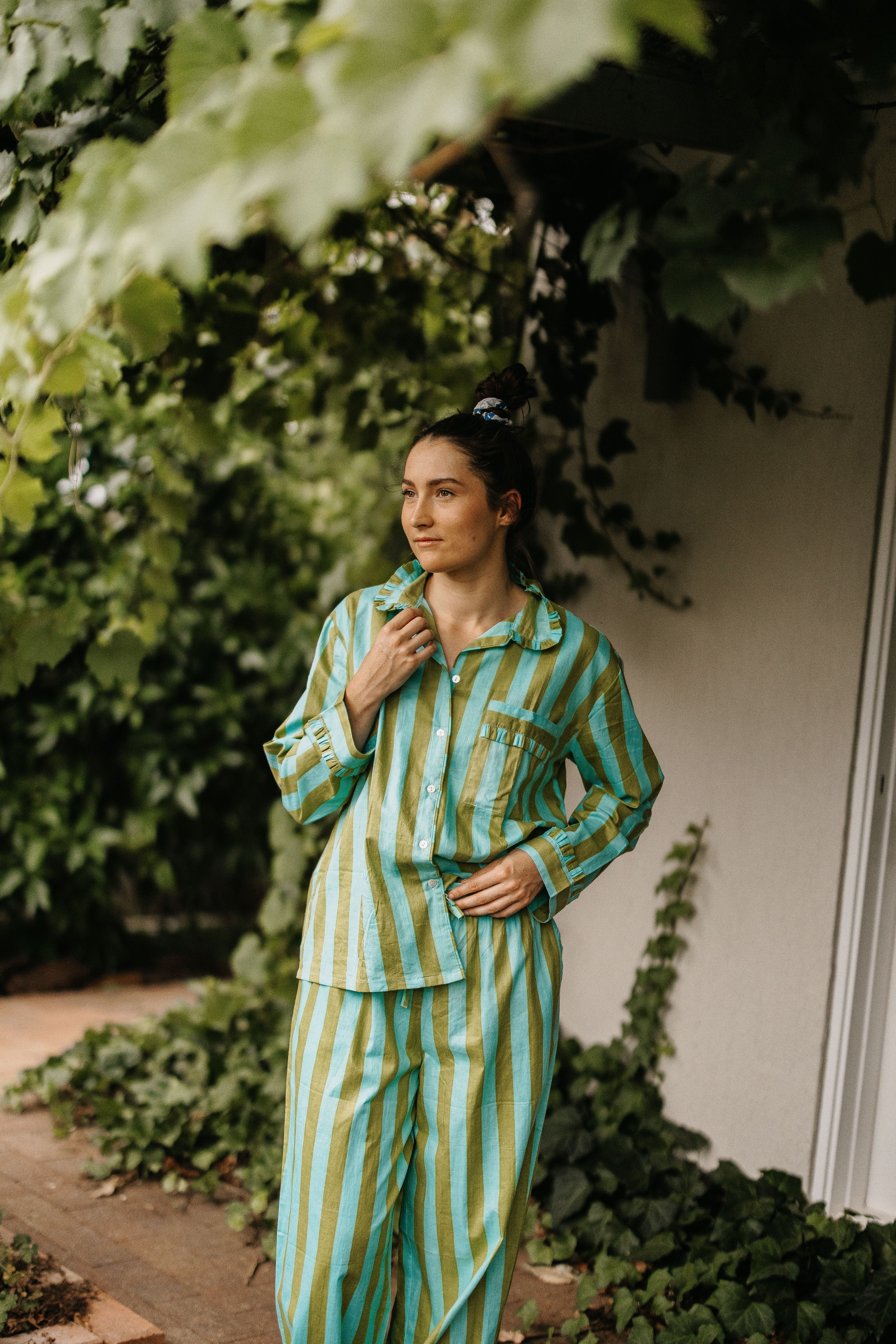 Harriet Olive Aqua Stripe Cotton Pyjama Set