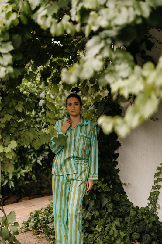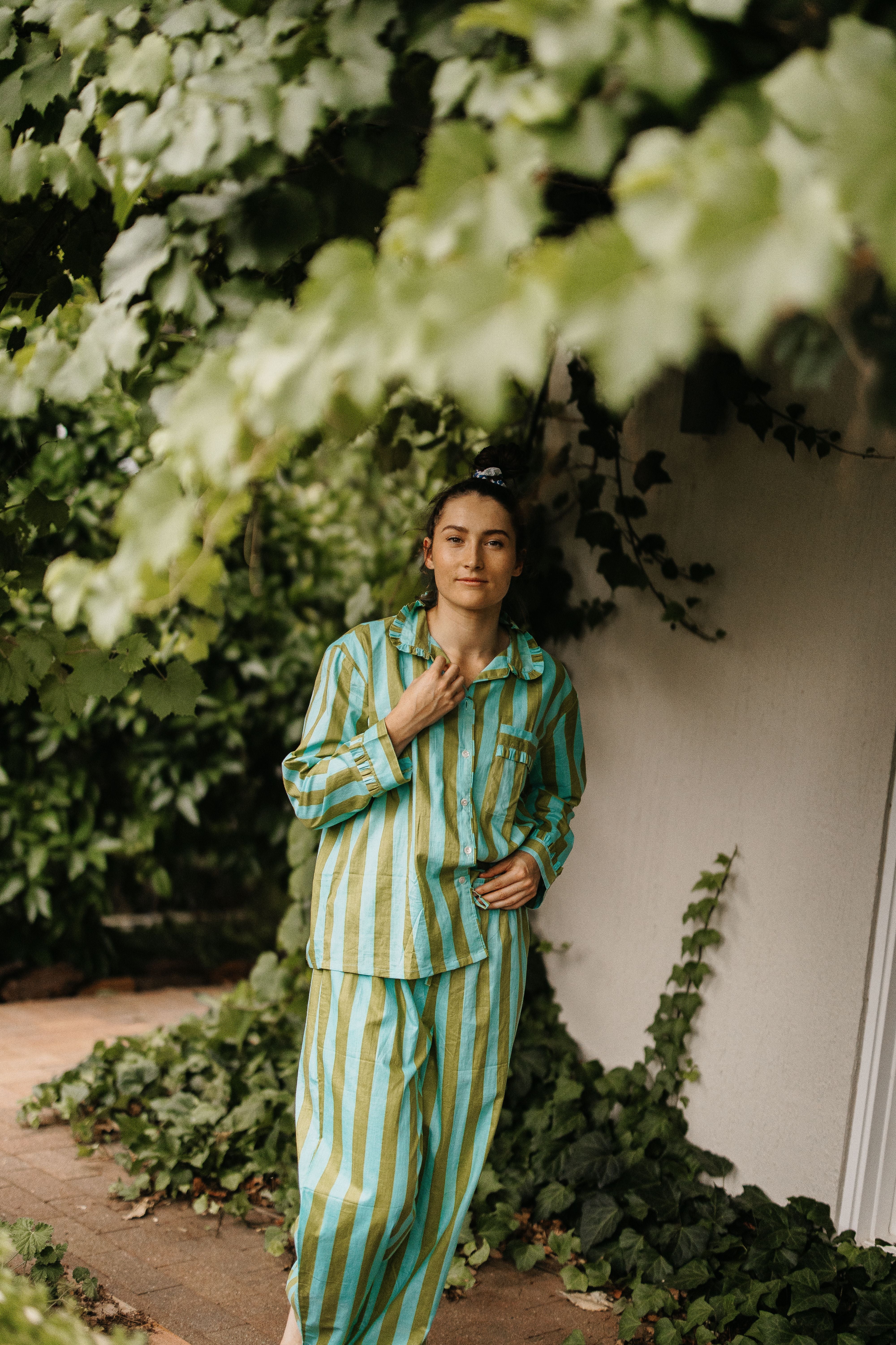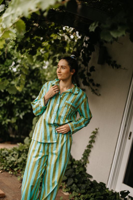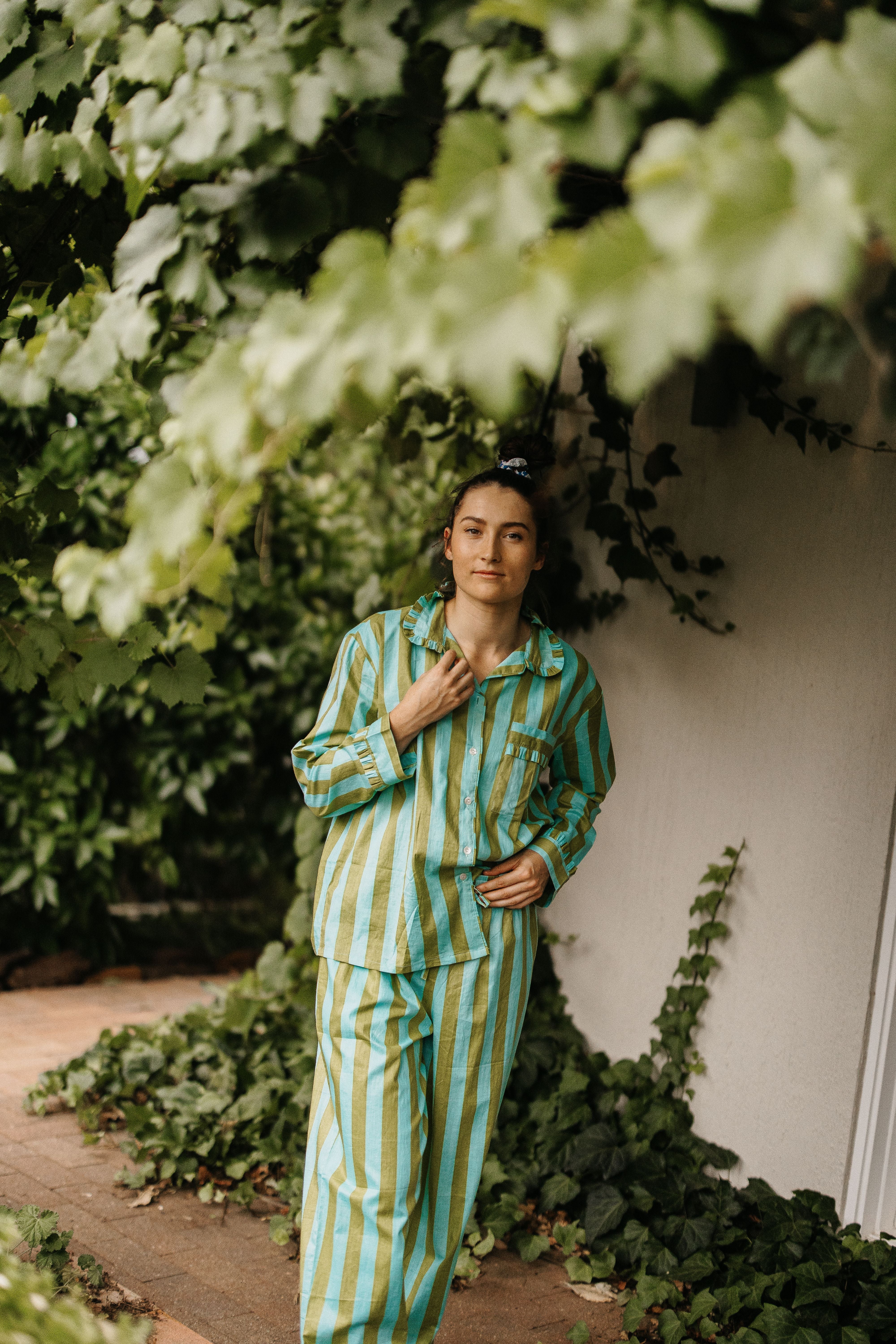 Harriet Olive Aqua Stripe Cotton Pyjama Set