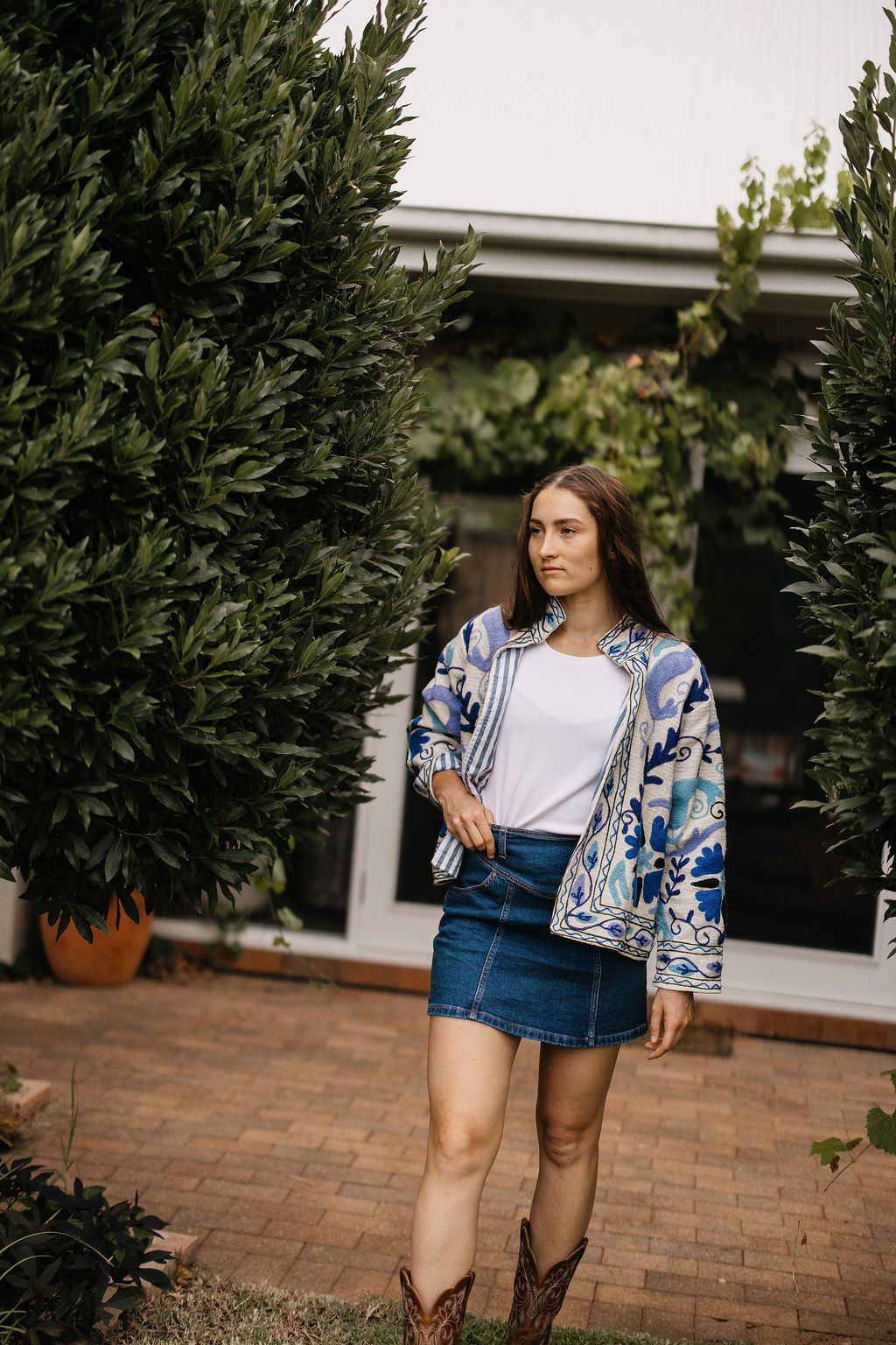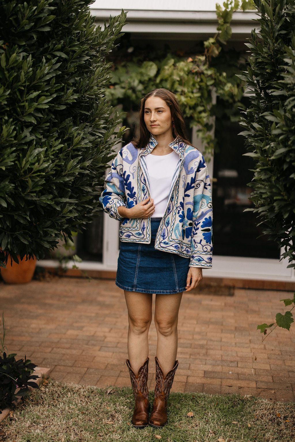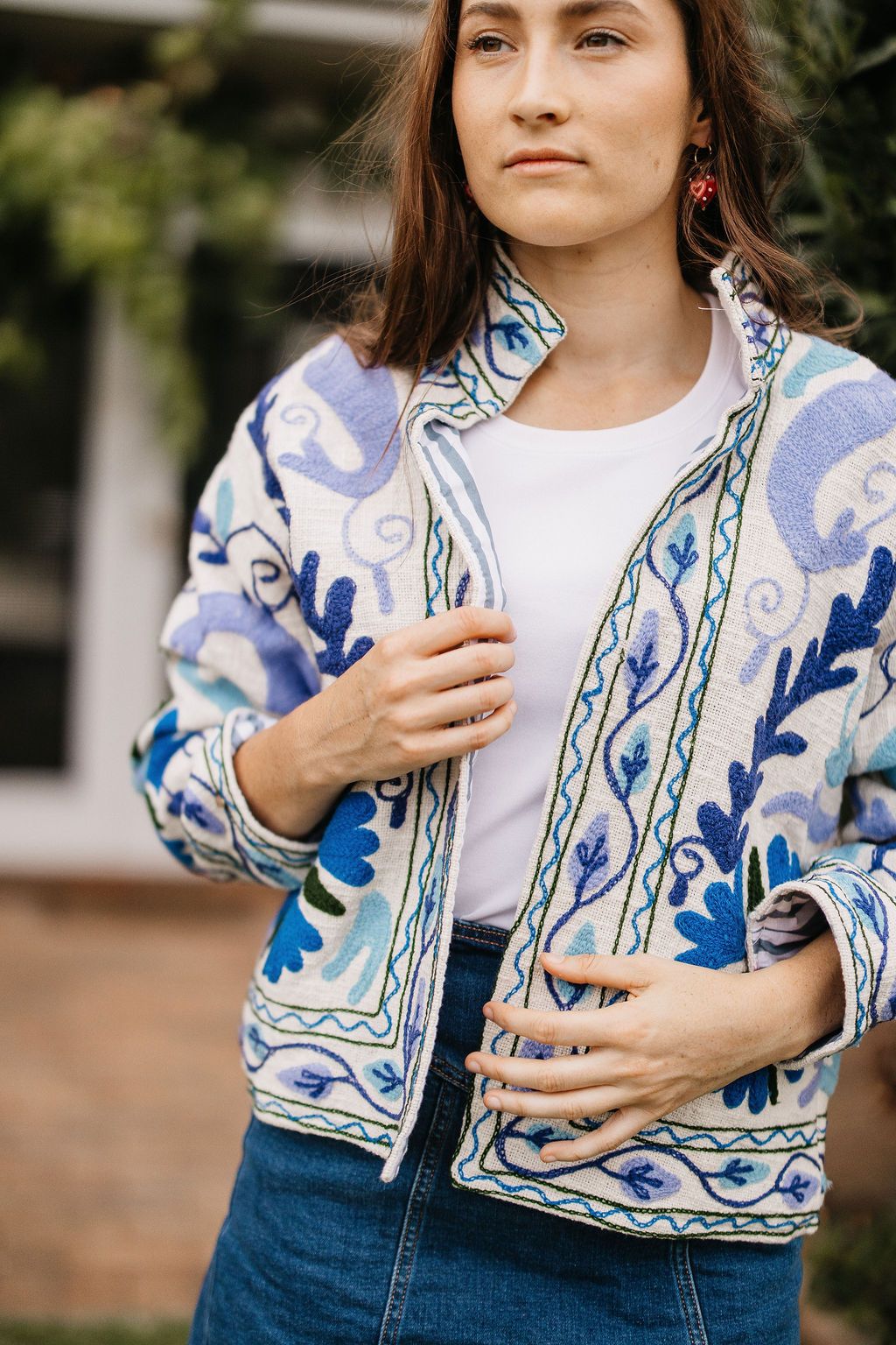 Clean, classic and endlessly wearable, the Isla Navy Floral Jacket features crisp white cotton fabric decorated with elegant navy floral detailing. A contrast lining adds a thoughtful finishing touch, giving this piece a refined yet relaxed feel.