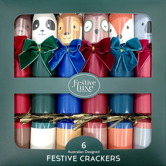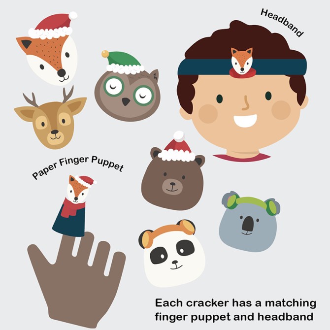 Get ready to celebrate the holidays in style with our Velvet Animals Christmas Crackers! This pack of 6 crackers includes paper animal finger puppets and the classic Christmas Cracker headband, along with a playful velvet bow. Perfect for adding some quirky fun to your festive gatherings.