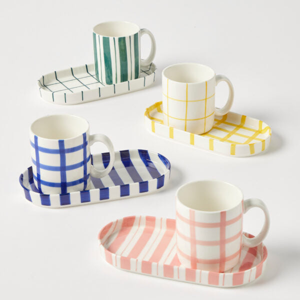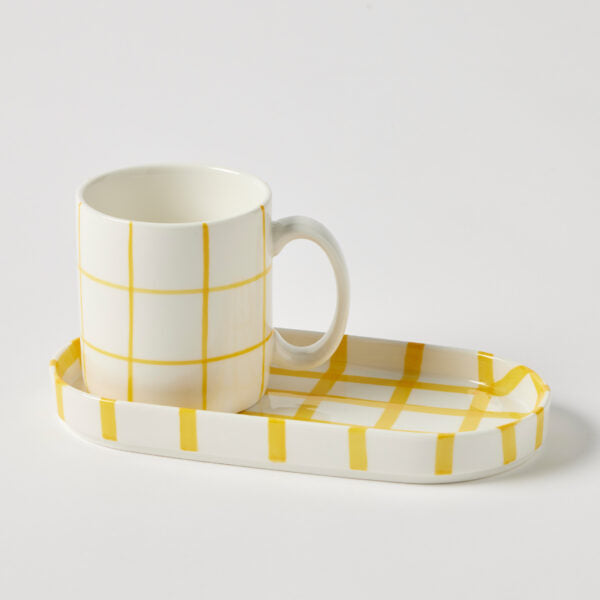 The Loft Breakfast Set adds a cool, coastal feel to morning rituals and gifting. Hand-painted, and crafted from New Bone China, this mug and striped tray blends functionality with a stylish and relaxed aesthetic. Using a soft modern silhouette, this Breakfast Set offers relaxed elegance for everyday use.