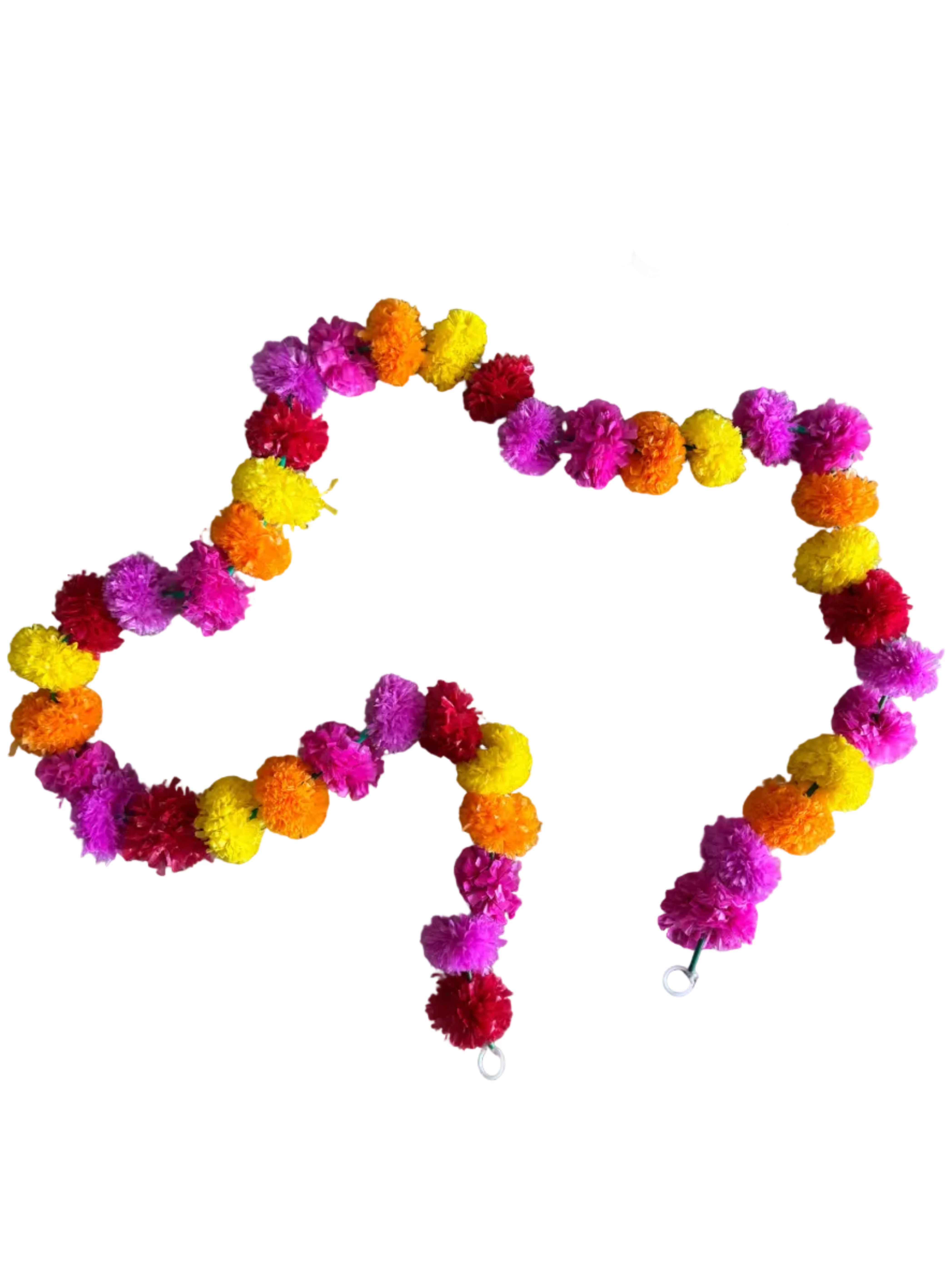 Bring instant joy to your space with the Marigold Pom Pom Garland. Made from fluffy, marigold-inspired plastic “flowers,” this playful garland adds colour, texture and a celebratory feel to any setting.