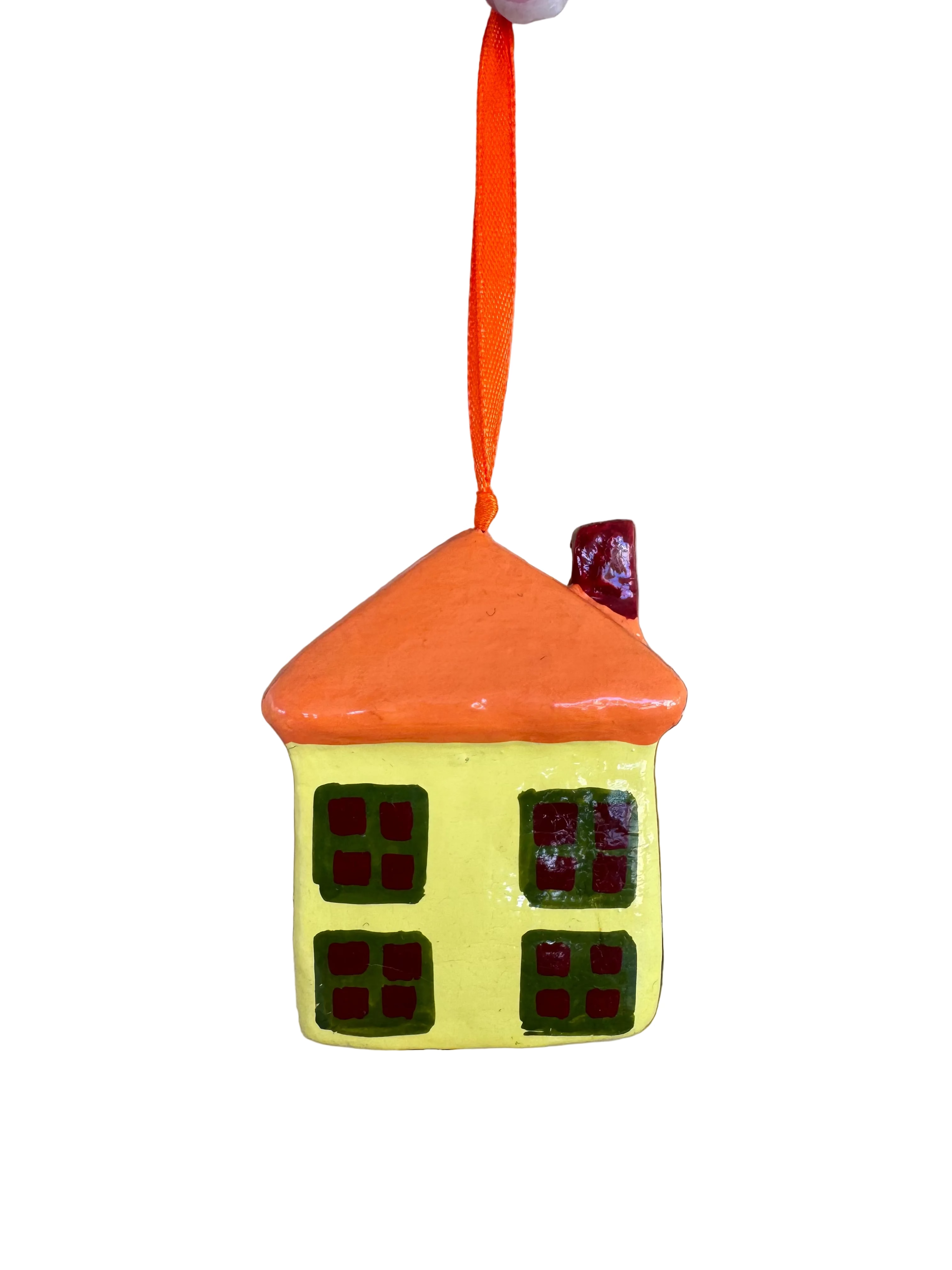 Yellow Painted House Papier Mache Ornament