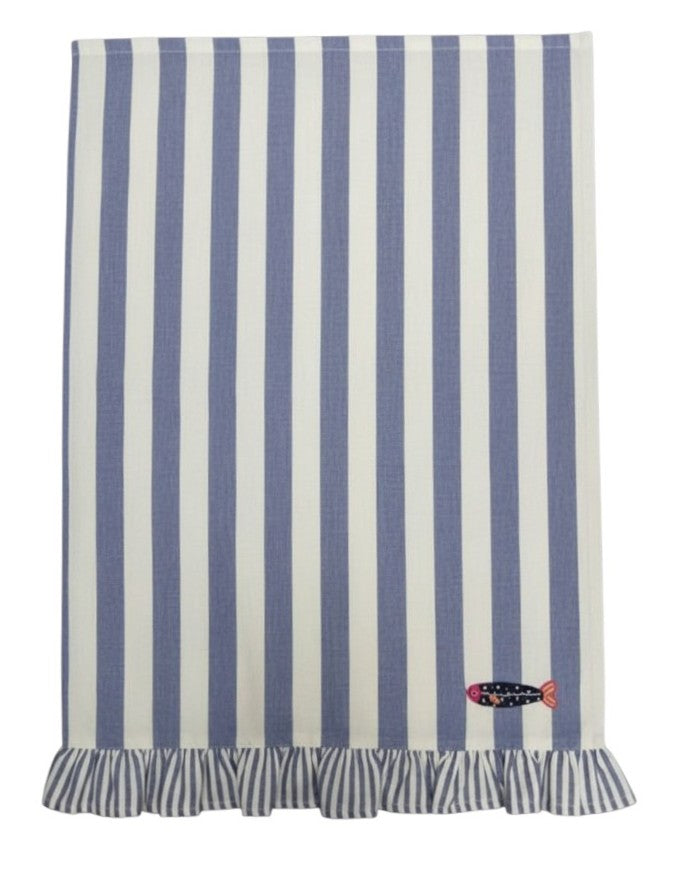 Bring a fresh coastal feel to your kitchen with the Harbour Stripe Embroidered Tea Towel in blue. Made from soft cotton with classic blue stripes, it’s finished with playful embroidered fish details and contrast ric rac trim for a charming seaside touch.