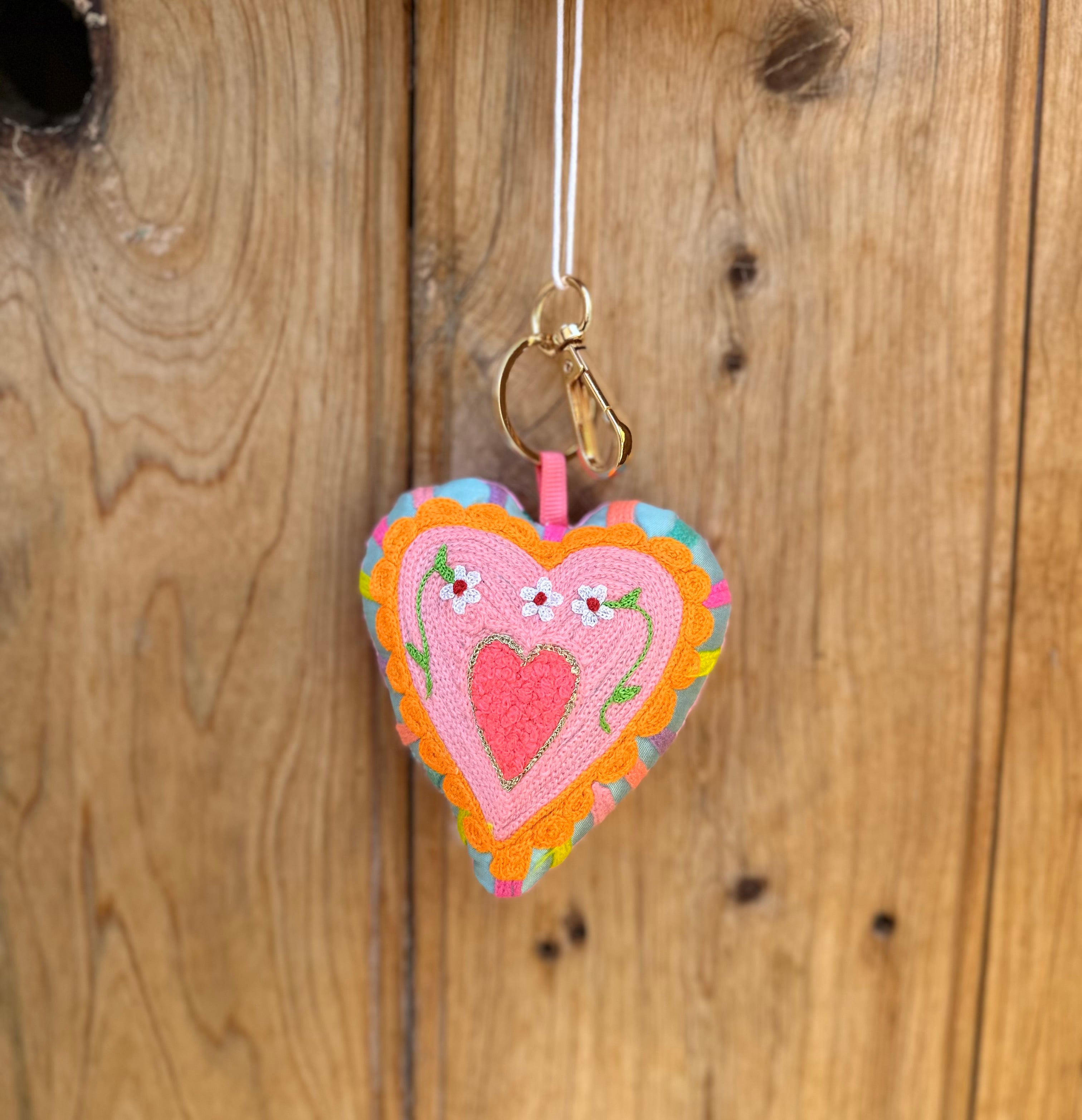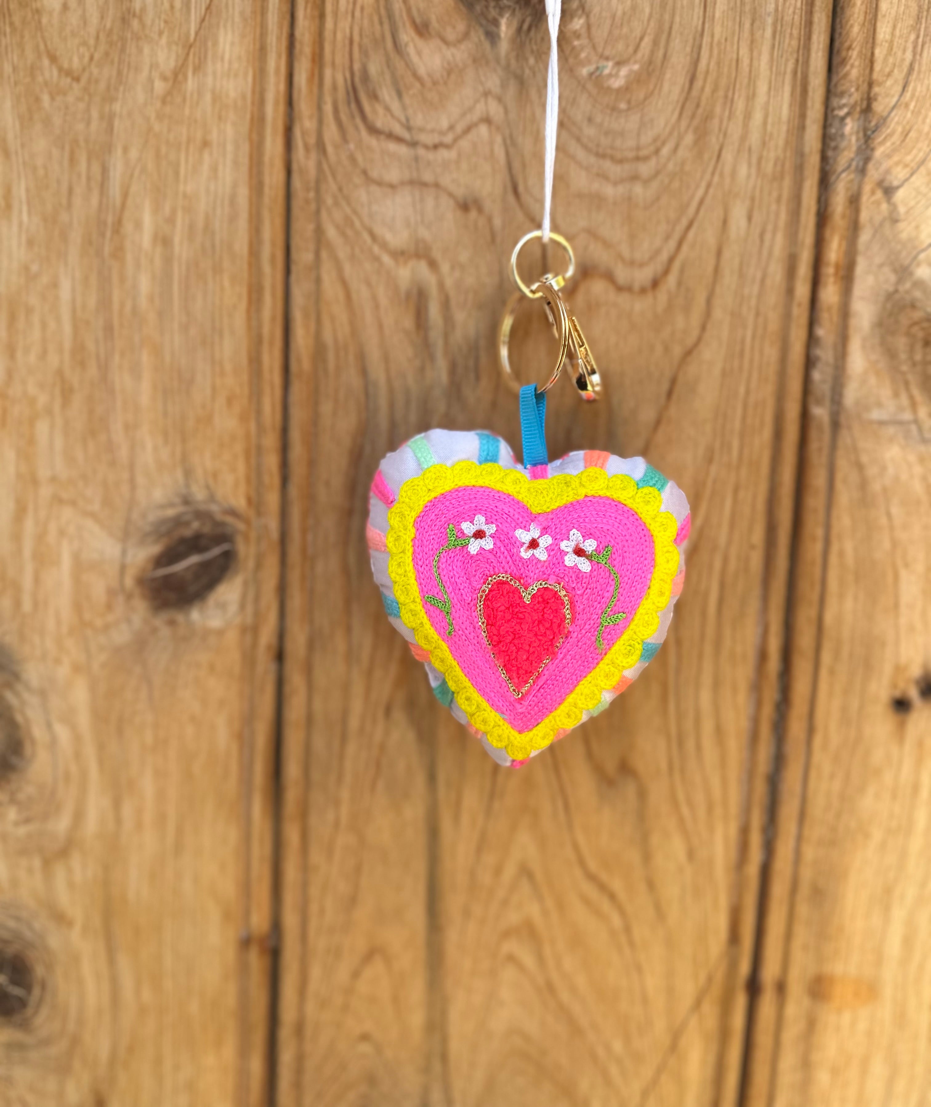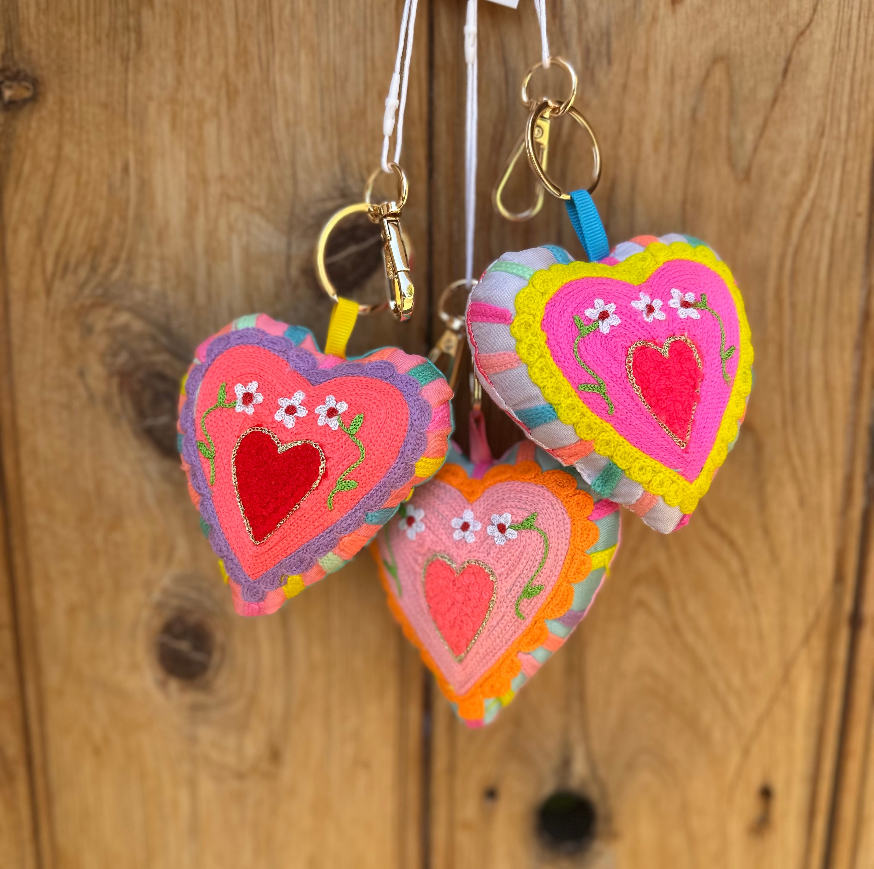 Carry a burst of colour wherever you go with this cheerful heart keyring! Choose from three vibrant patterns, each heart measures approximately 9cm long—the perfect size to brighten up your keys, bag, or locker.