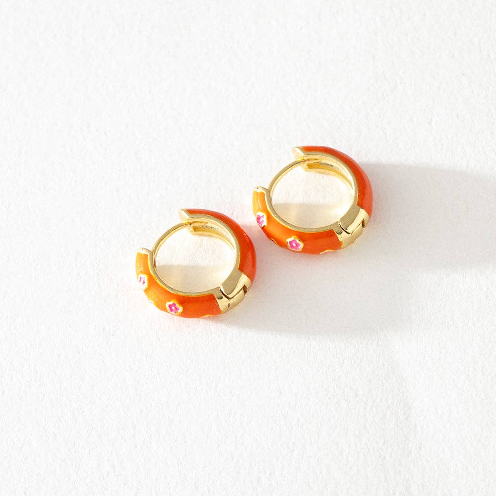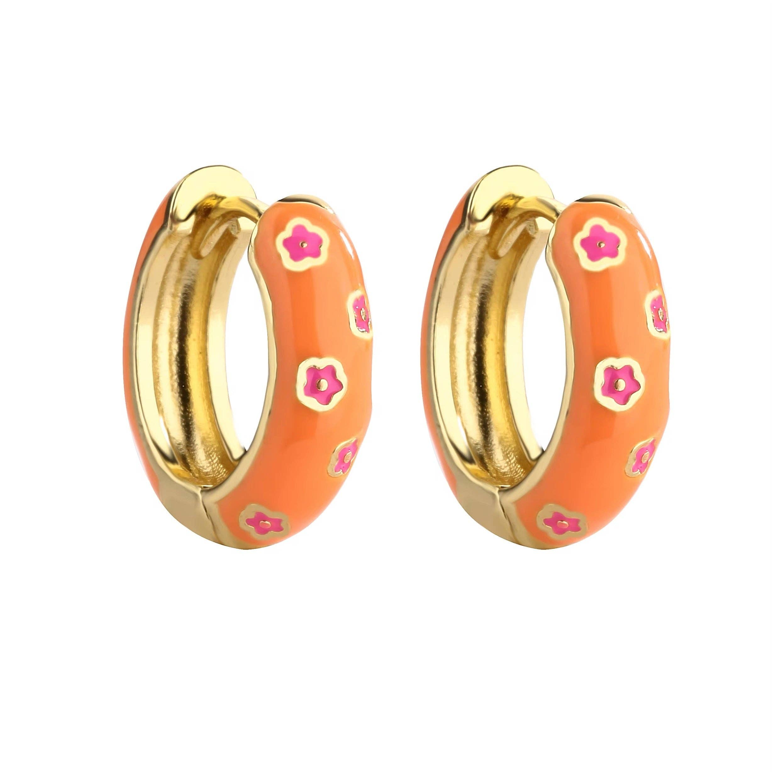 Dazzle and stack with our 1.5cm orange enamel hoops, featuring a delicate pink flower pattern. 🌸✨ Perfect for everyday wear and available in 6 stunning colour combos to suit any style!