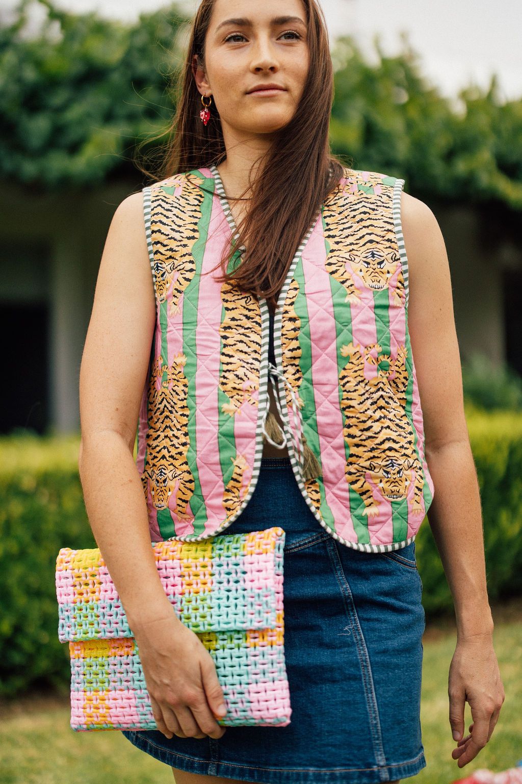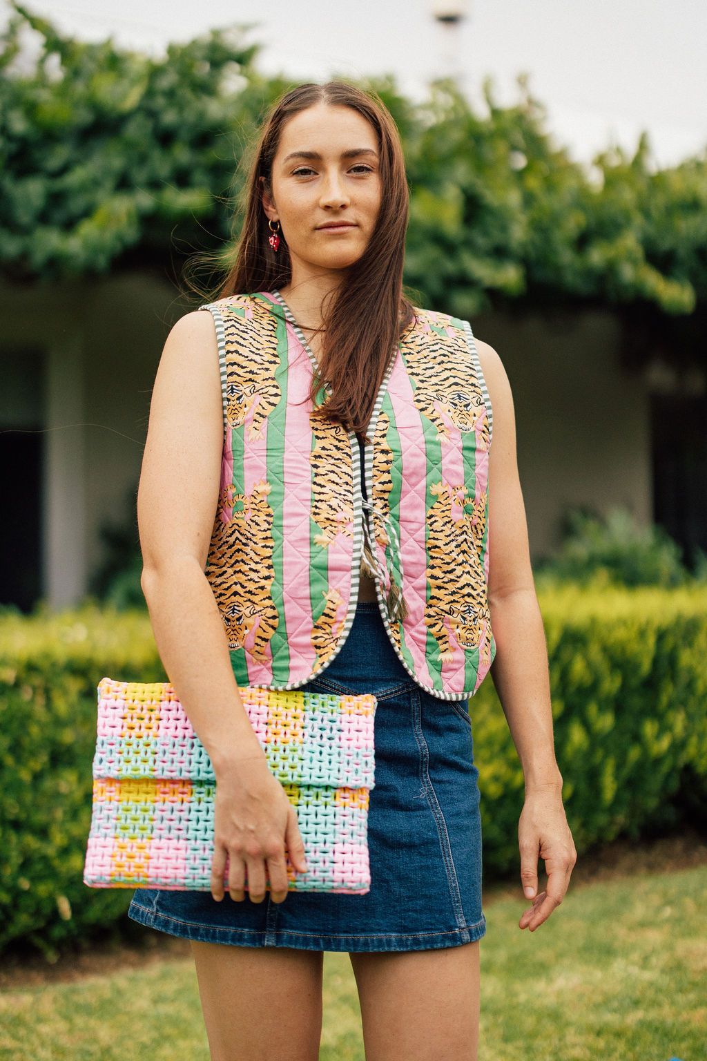 Sorbet Woven Plastic Clutch – Pastel Pop Check