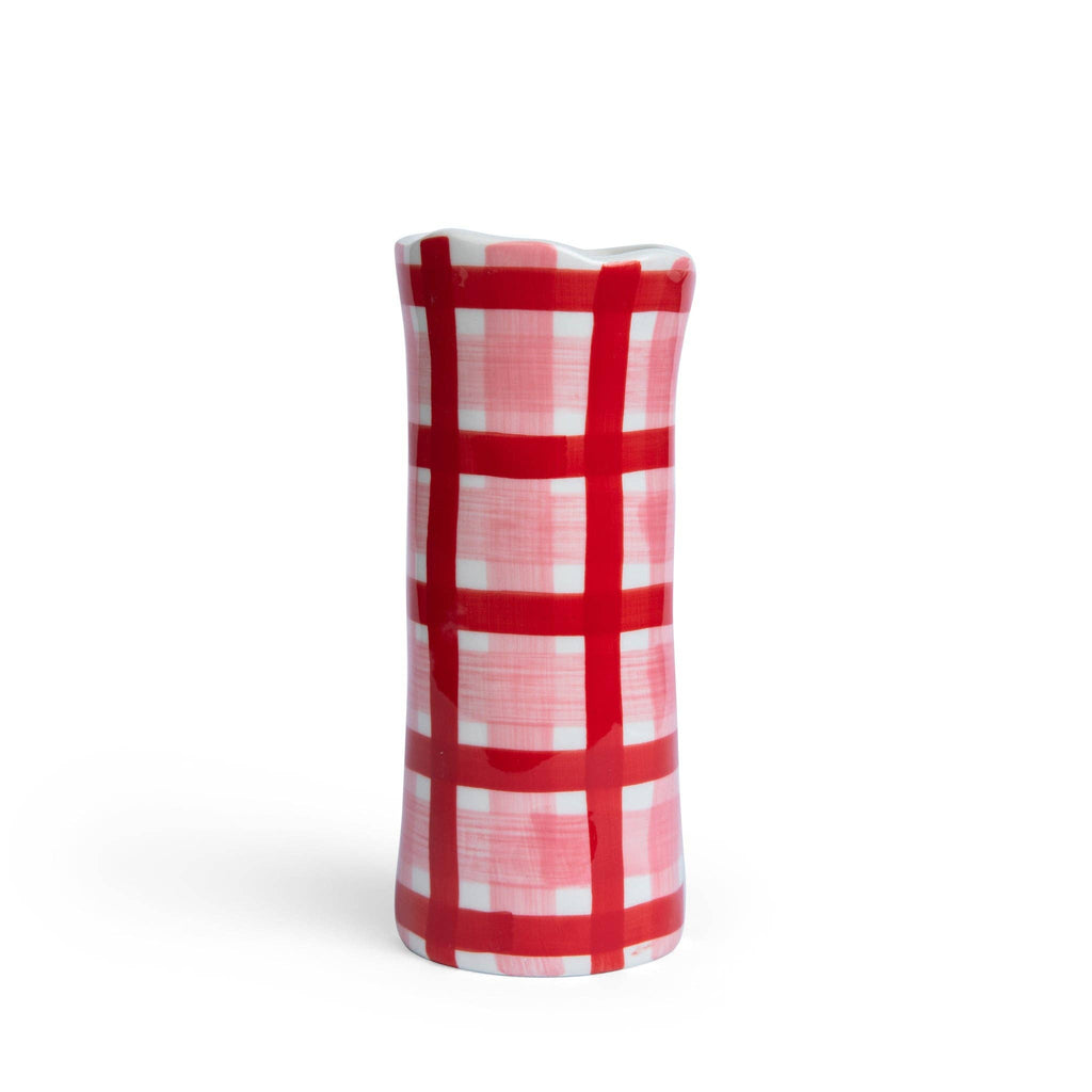 Small Pink and Red Gingham Vase