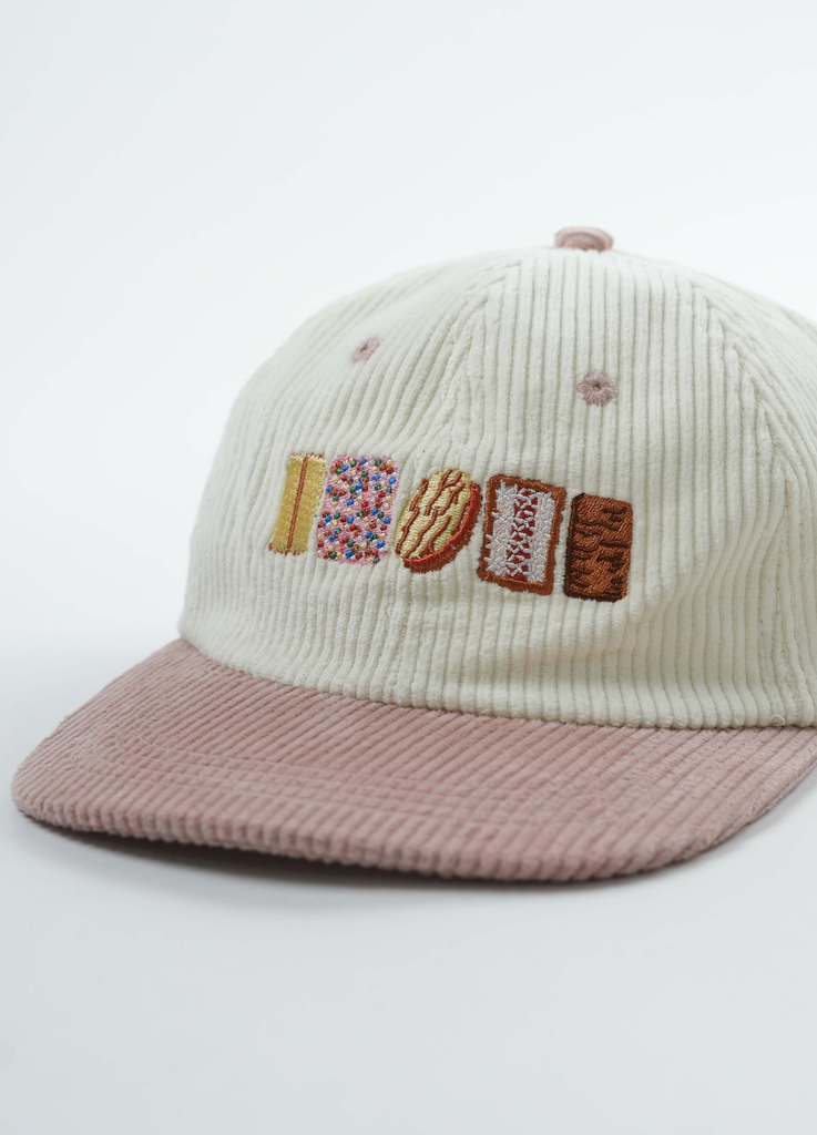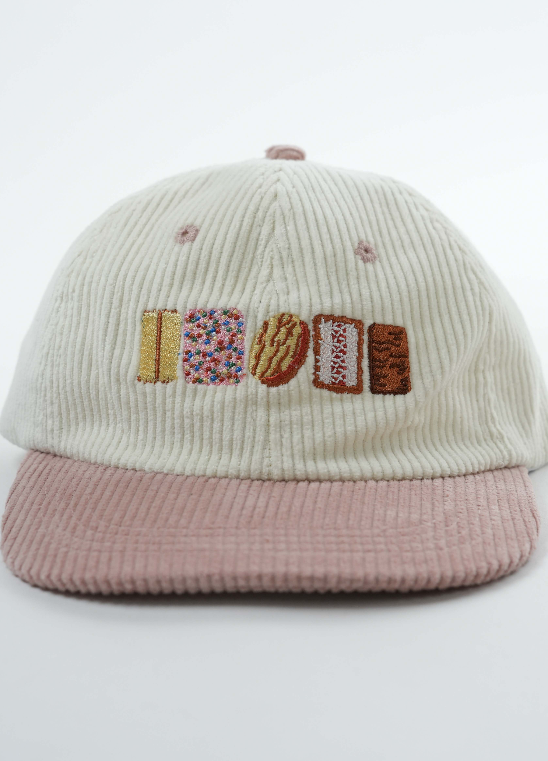 The AUSSIE BISCUITS HAT will take you back to the nostalgic flavours of your childhood. The ultimate iconic tastes that simply melt in your mouth. You'll be begging your mum to include it in her shopping tricks and being extra good in school just to get a pack. This iconic lid is a must-have! - Vintage cap made of corduroy! -Embrace some nostalgic vibes with this rad 6 panel hat in the retro 70's fashion. - Hand drawn Australian biscuits embroidered and looks great on everyone! - Adjustable back-strap to fit all shapes and sizes