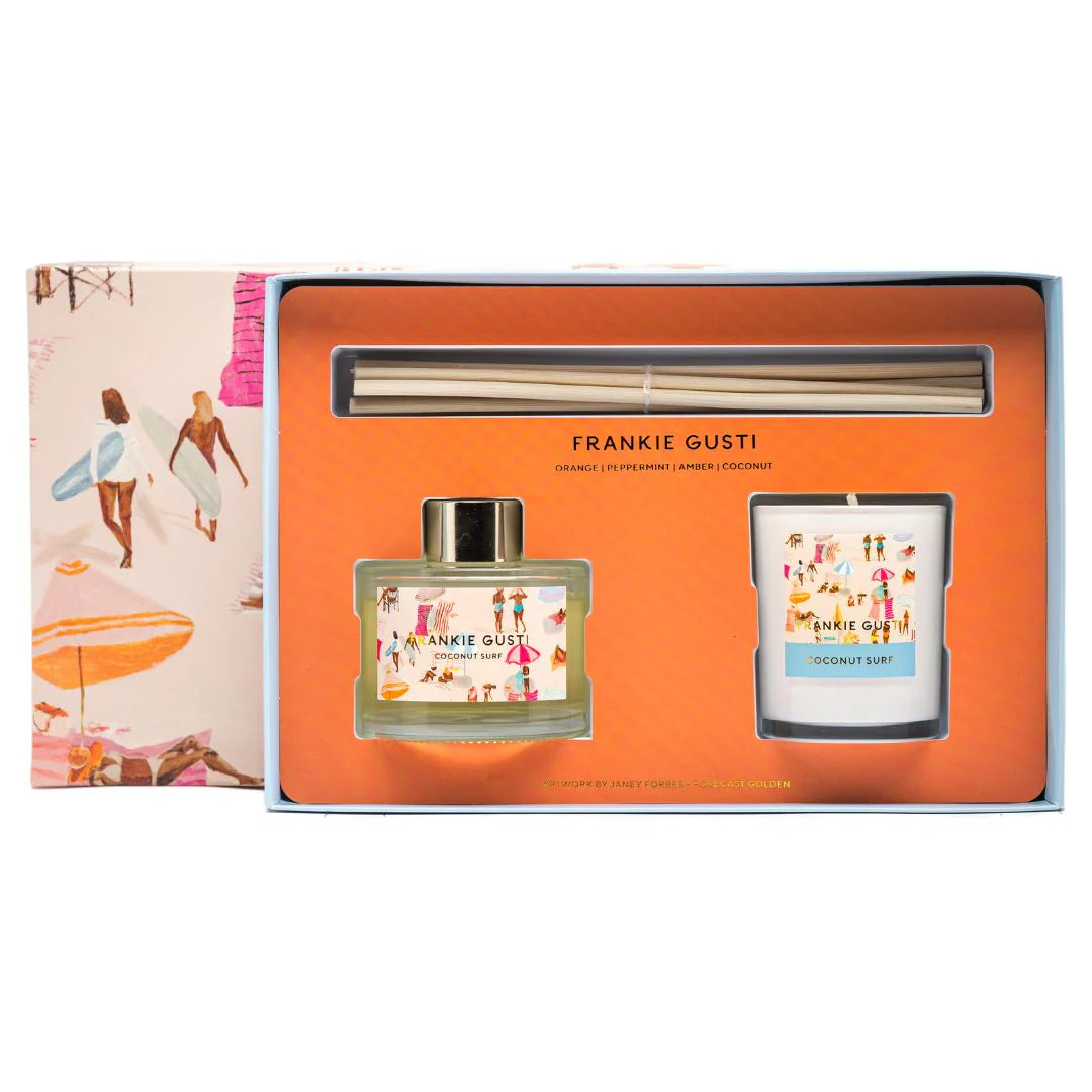 Fresh, warm + quietly untamed this delicious scent evokes nostalgic memories of beach side festivities with notes of orange and peppermint. Middle notes are musk, honey and cedar leaf. Base notes are amber and coconut.