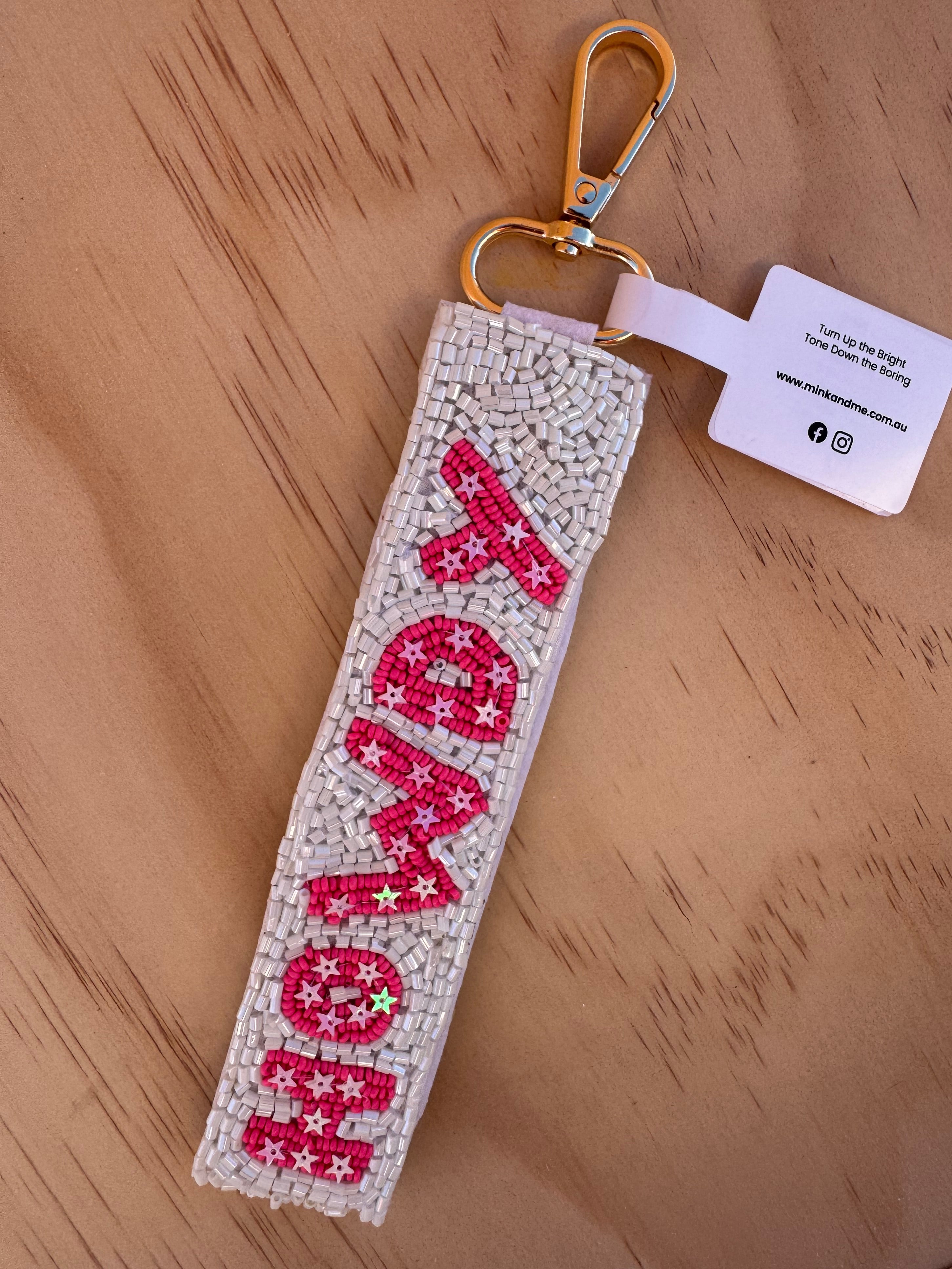 Add a splash of fun to your keys with this playful Howdy Beaded Keychain. Measuring 16.5x3.5cm, it features a white beaded strap adorned with cheerful pink letters spelling out "howdy." Lightweight and charming, it’s the perfect little accessory to brighten your day and keep your keys easy to spot.
