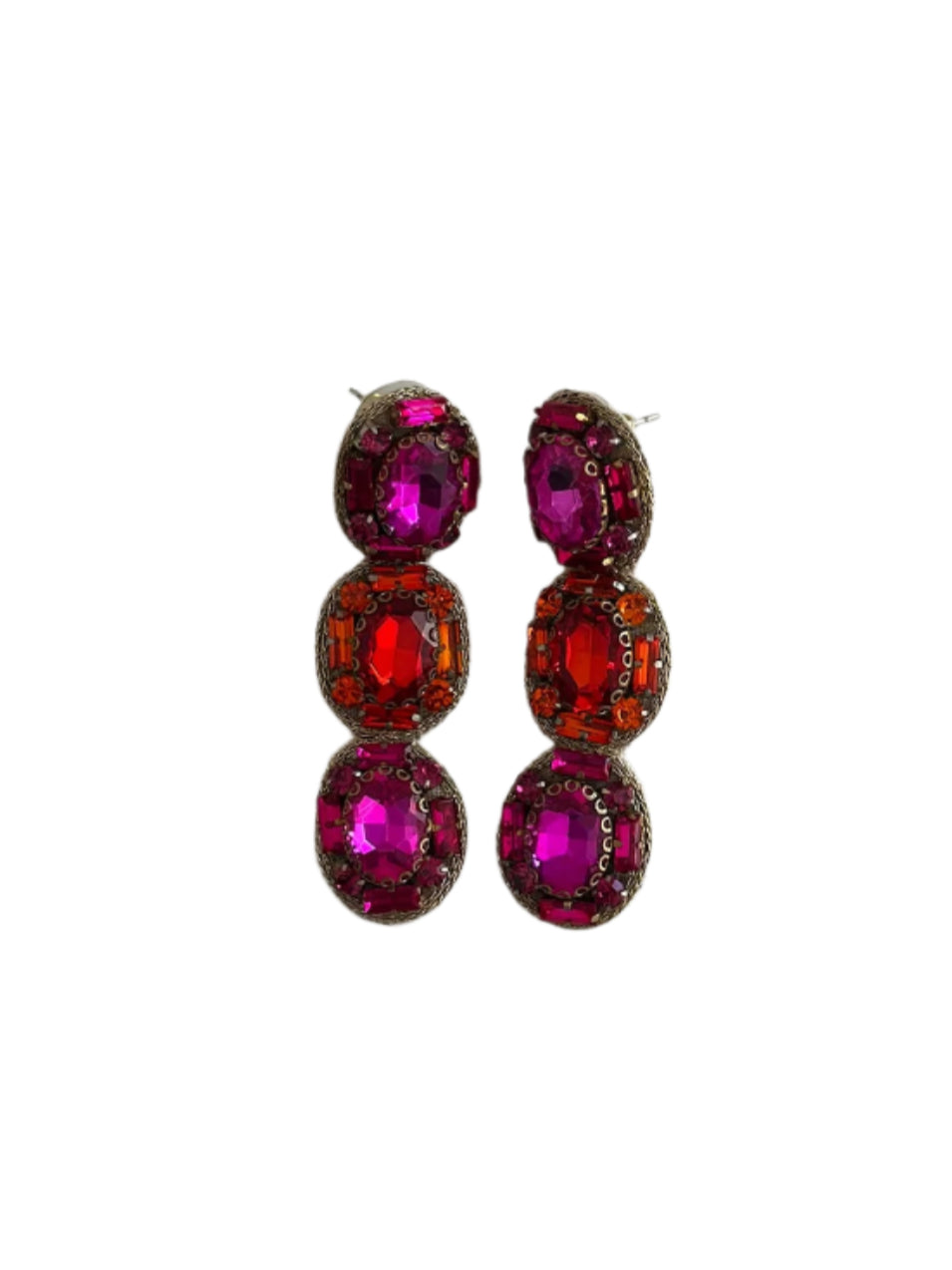 Make a bold statement with these chunky Pink and Orange Jewel Earrings. Sized at 7x2cm, their vibrant hues and secure stud closure bring a playful pop of colour to any outfit, perfect for brightening your day with a touch of fun flair.